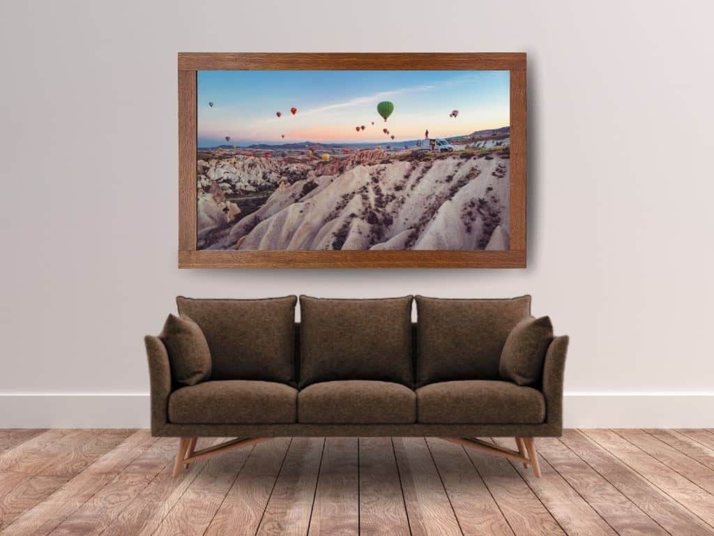 Thanks to its invisible structure, it will give your photo print a feeling of floating image, greater relief. The profile of the re-entrant frame is U-shaped, and allows you to slide in screws or hooks that you have previously installed on the wall.