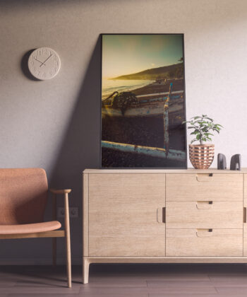 With no glazing, an Original Photo Print On Aluminum Dibond has a purist look. Aluminum Dibond is a 3mm-thick composite material with three layers. Two white-coated aluminum plates enclose a black polyethylene core. Viewed from the sides, the material appears black. Although it is extremely robust, aluminum Dibond has a low weight, meaning it is also perfect for large-format pieces.