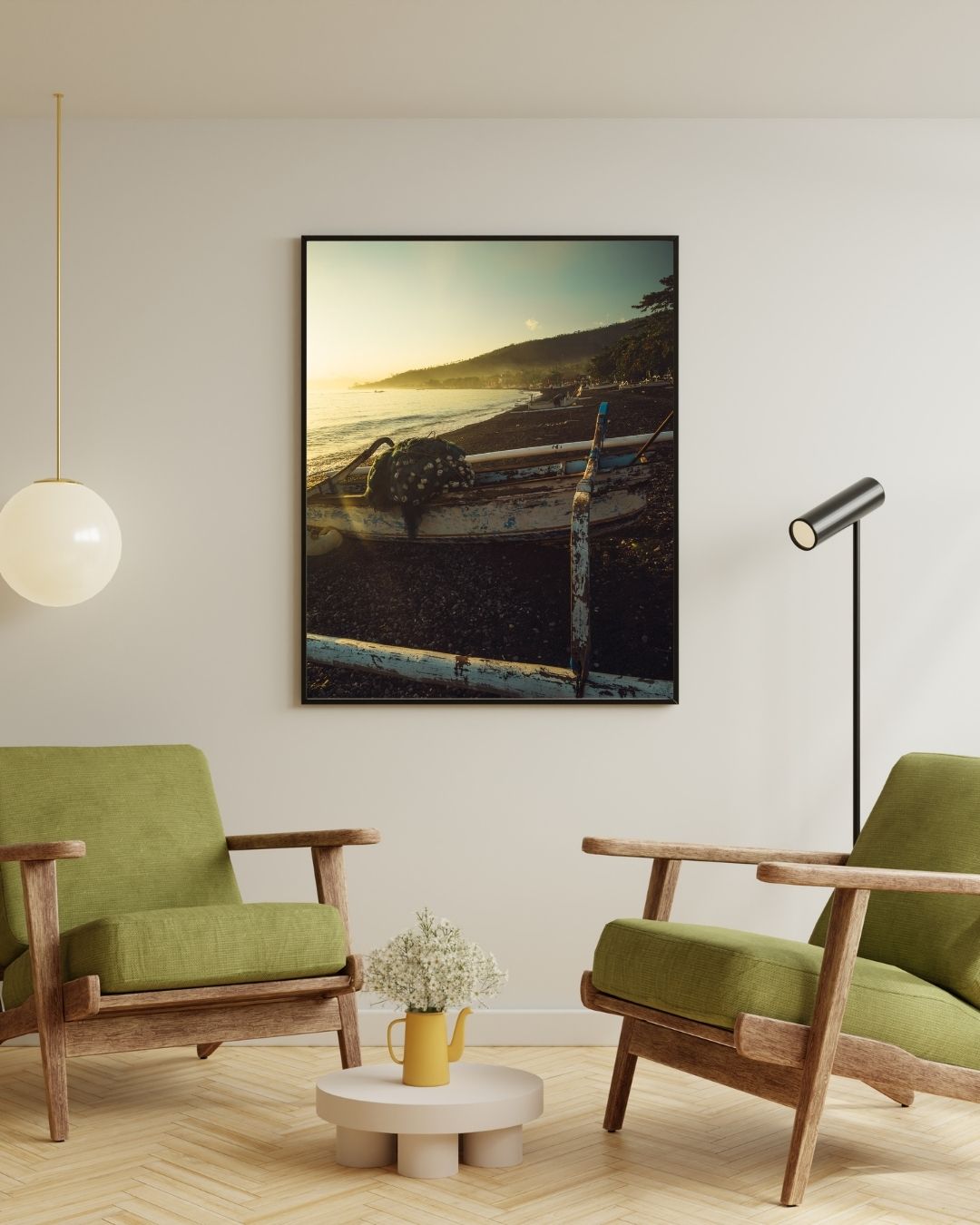 Thanks to its invisible structure, it will give your photo print a feeling of floating image, greater relief. The profile of the re-entrant frame is U-shaped, and allows you to slide in screws or hooks that you have previously installed on the wall.